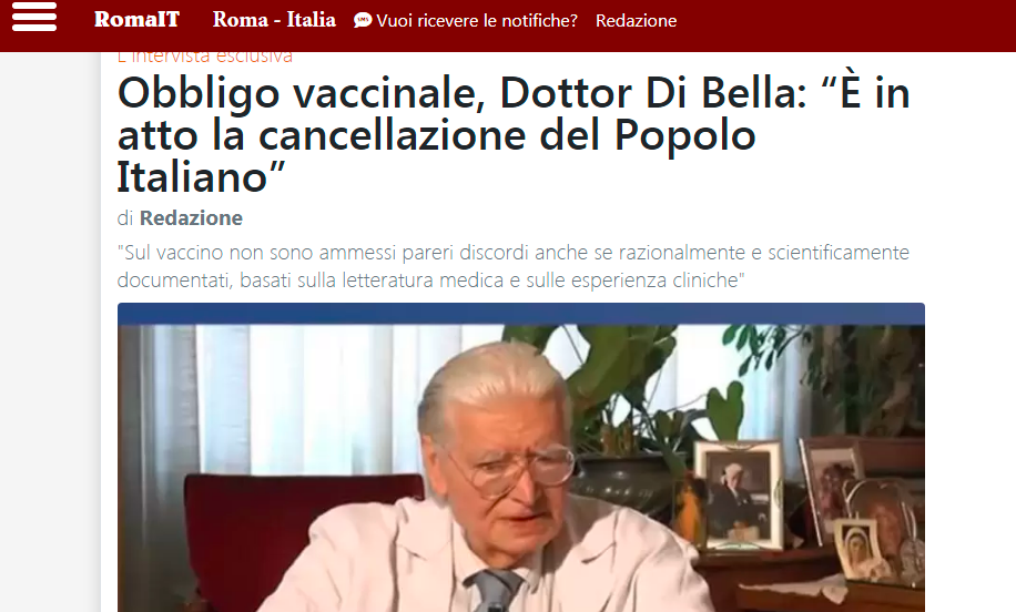 Obbligo vaccinale, Dottor Di Bella: “È in atto la cancellazione del Popolo Italiano” (Roma.it)